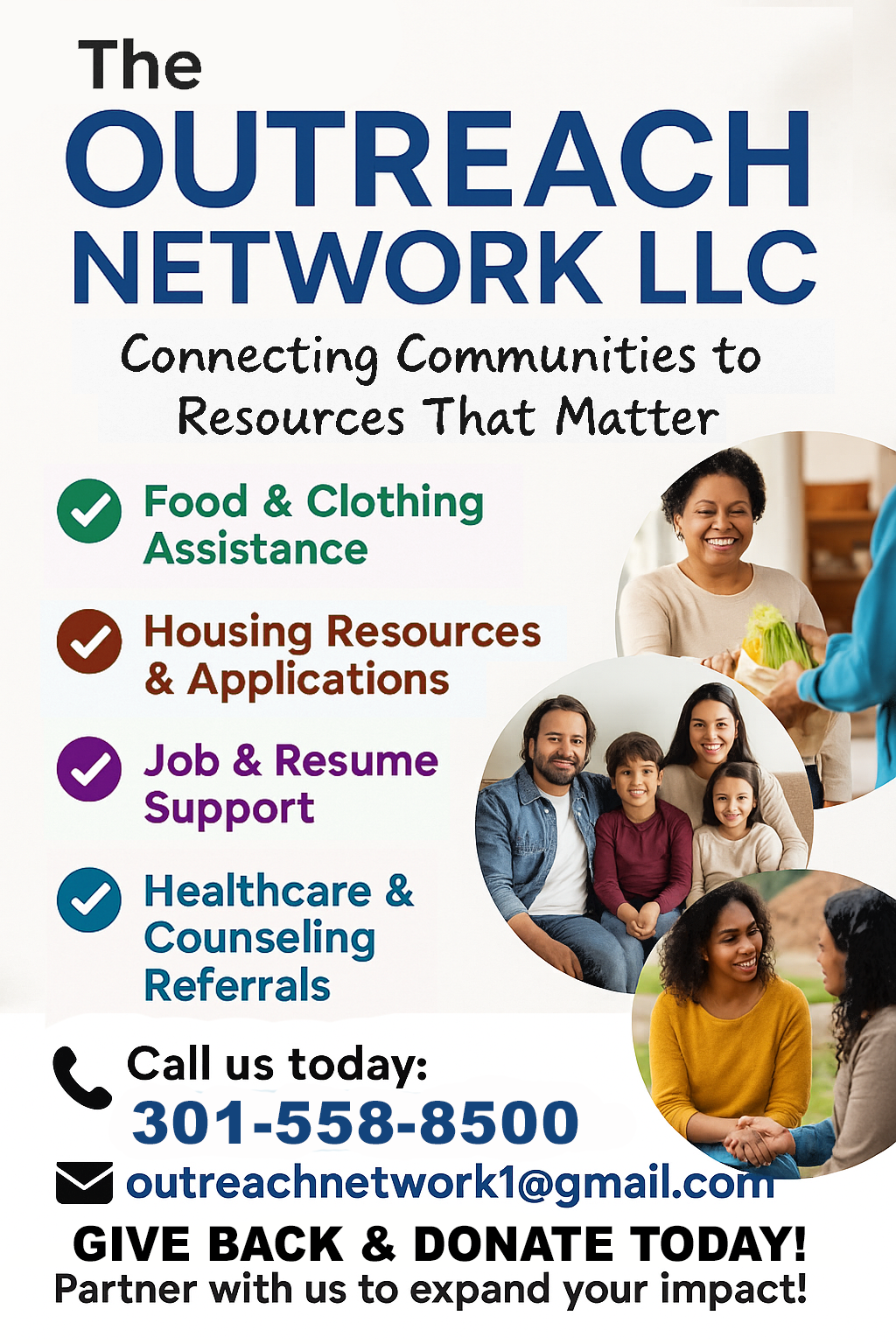 With a deep-rooted passion for serving underserved families in Prince George’s County, The Outreach Network LLC was founded to address critical needs such as food insecurity, housing instability, healthcare access, and job opportunities. The organization’s journey began with small drives and community partnerships, gradually evolving into a trusted source of support that goes beyond charity to empower individuals for long-term stability. Drawing on extensive experience in community outreach, health and housing referrals, and workforce development, The Outreach Network LLC stands as a beacon of hope, resilience, and opportunity in creating stronger, healthier communities across Prince George’s County and beyond.